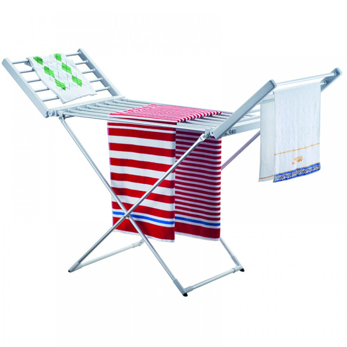 Незамінна для швидкого сушіння тонкої білизни. Ефективно бореться з бактеріями – за рахунок рівномірного розподілу тепла при сушінні білизни гинуть усі шкідливі бактерії. Ніжки оснащені пластмасовими ковпачками, що захищають підлогу від подряпин.